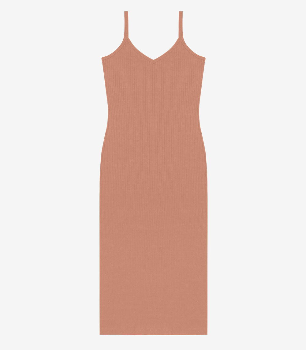 Vestido Midi em Ribana Canelada Rovitex Marrom