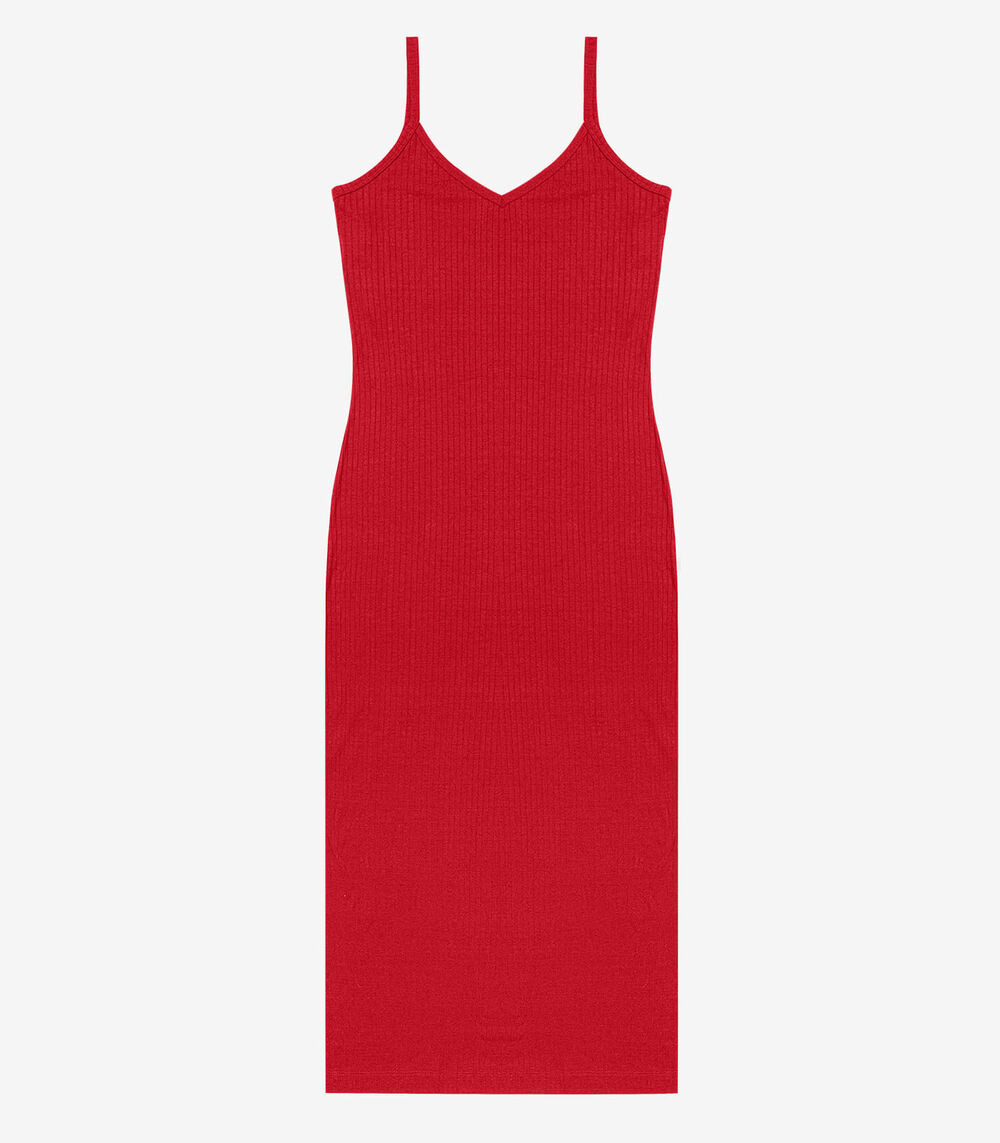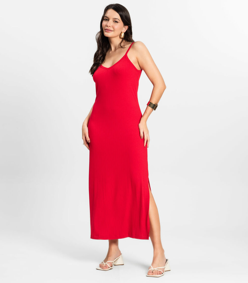 Vestido Midi em Ribana Canelada Rovitex Vermelho