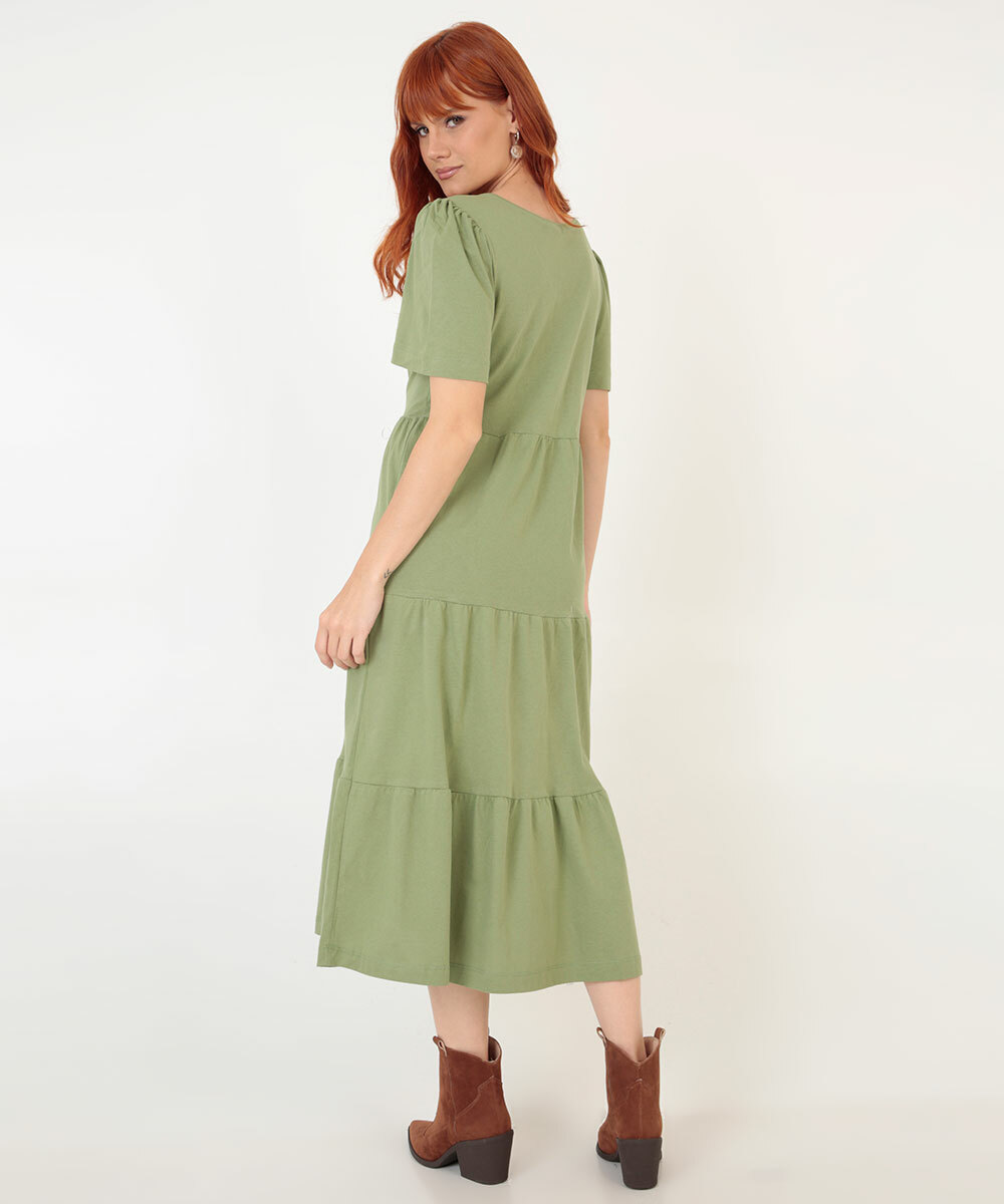 Vestido Midi Feminino Babado Manga Curta Marisa