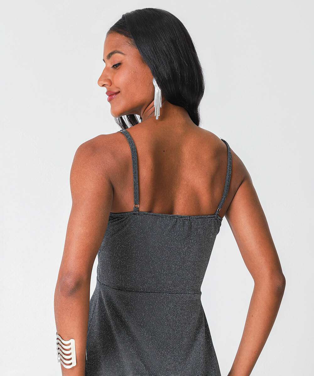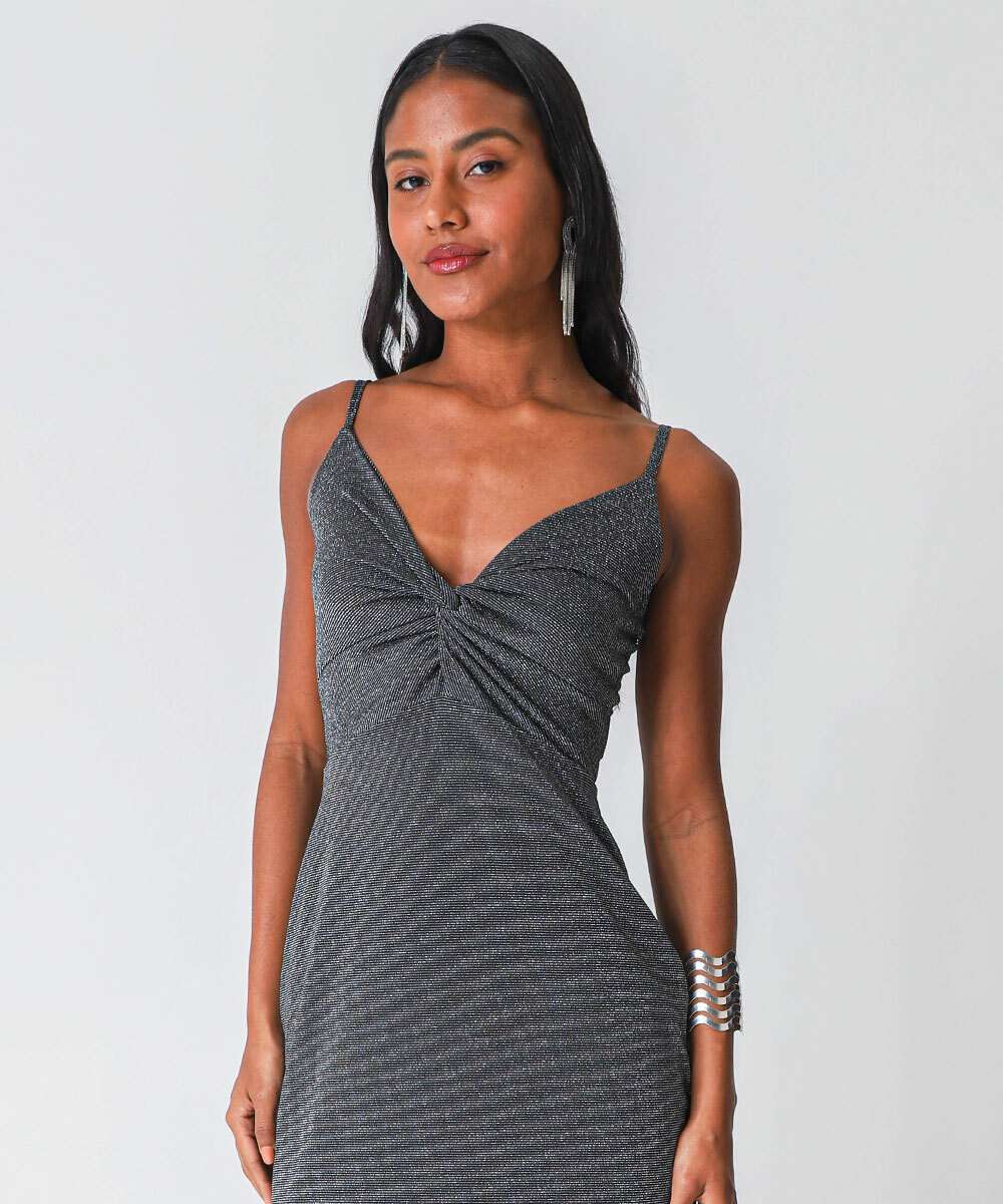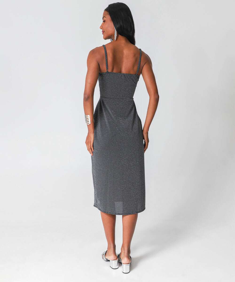 Vestido Midi Feminino Brilho Lurex Marisa Preto
