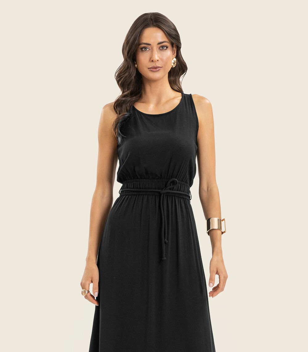 Vestido Midi Feminino Com Cinto Endless Preto
