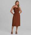 Vestido Midi Feminino De Alça Em Viscose Dianna Marrom