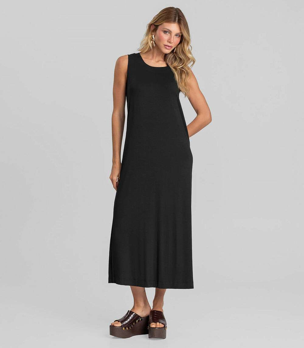 Vestido Midi Feminino em Malha Visco Dianna Preto
