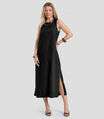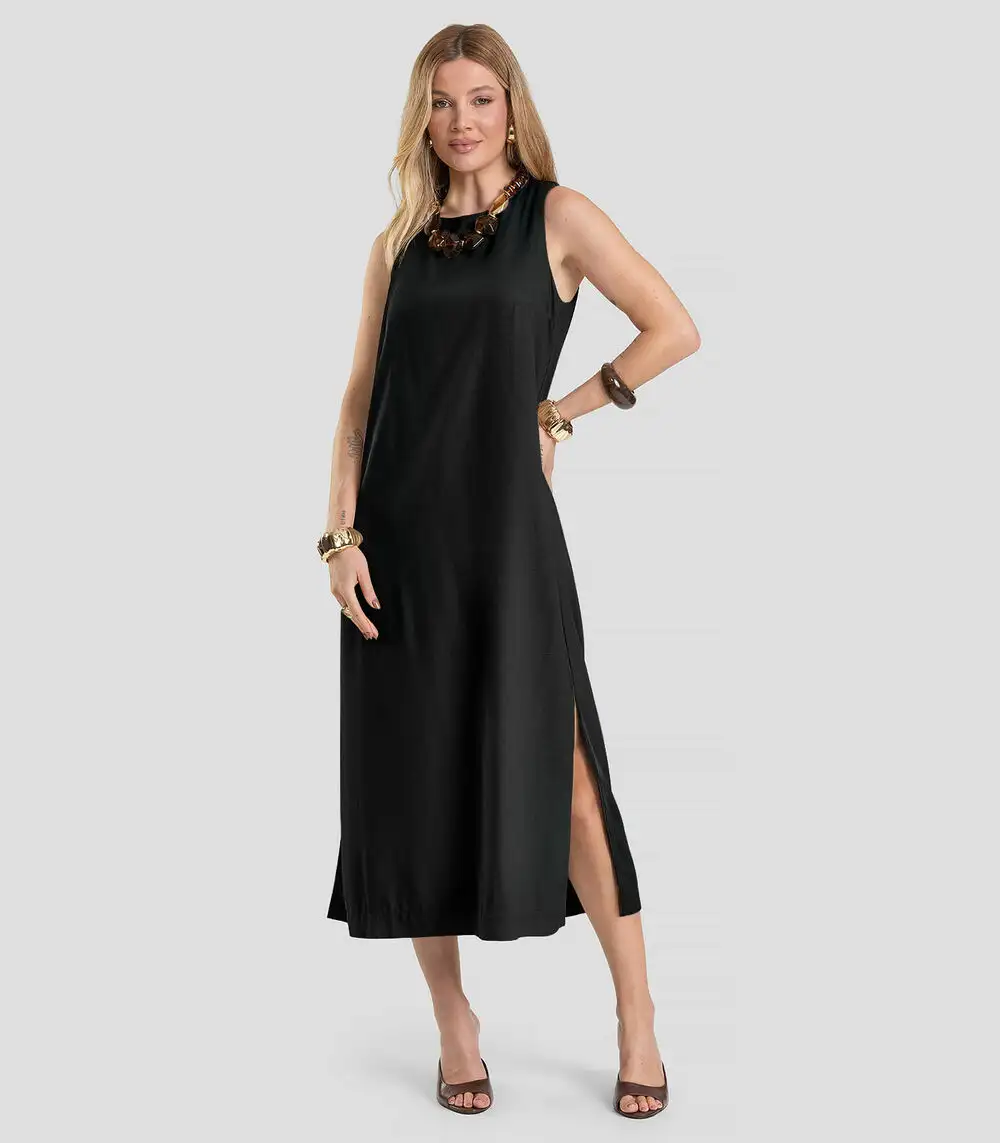 Vestido Midi Feminino em Tecido Linho Dianna Preto
