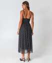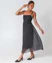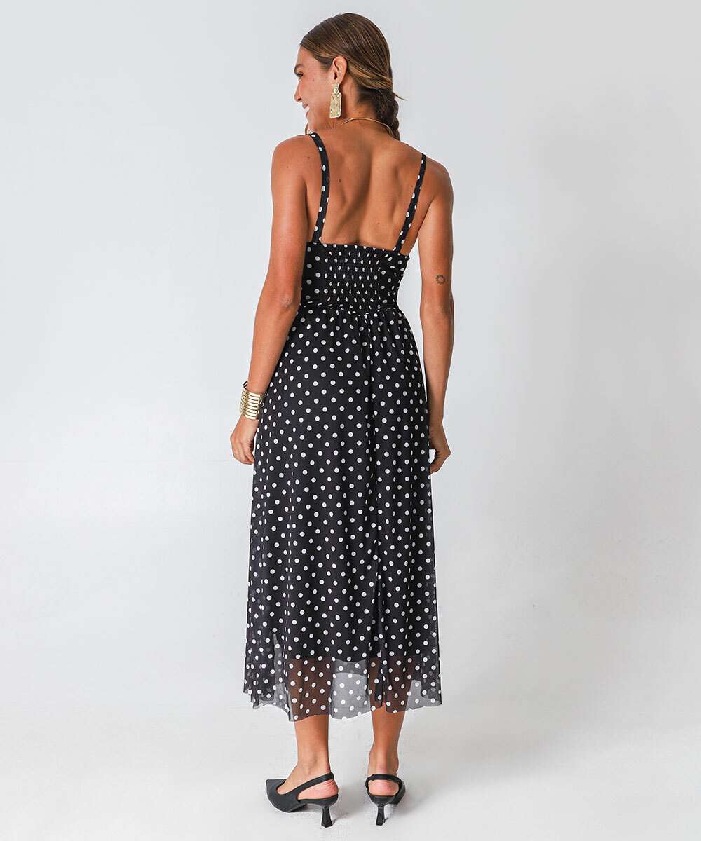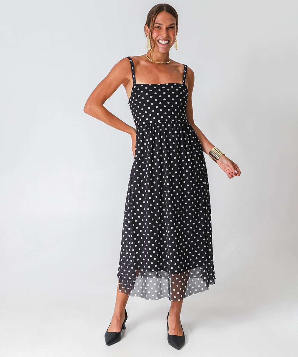 Vestido Midi Feminino Tule Poá Alças Finas Marisa Preto