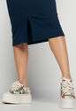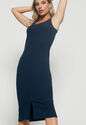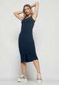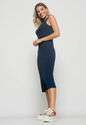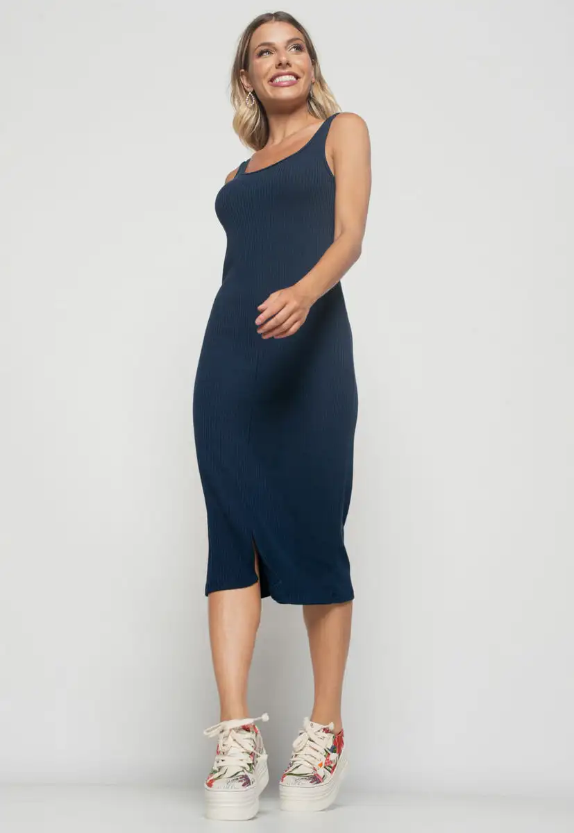 Vestido Midi Fenda Canelado Azul