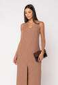 Este vestido midi exala elegância e simplicidade, combinando um design minimalista e sofisticado.Confeccionado em tecido Alfaiataria de alta qualidade, transmite sofisticação e versatilidade.Na parte frontal, o vestido apresenta um decote V sutil, acrescentando um toque de feminilidade sem abrir mão da discrição.Seu caimento reto alonga a silhueta, enquanto a fenda frontal adiciona um detalhe moderno e charmoso.Além disso, bolsos laterais discretos garantem funcionalidade sem comprometer o design refinado.Na parte de trás, o destaque fica por conta do decote V mais acentuado, que valoriza as costas de maneira delicada.O fechamento é feito por um zíper discreto na região central traseira, proporcionando praticidade ao vestir.Confeccionado em tecido Alfaiataria de alta qualidade.Fenda Frontal.Bolsos Laterais Discretos.Fechamento por Zíper Discreto. Medidas da modelo: Altura 1,73cm | Busto 86cm | Cintura 67cm | Quadril 99cmModelo veste PComposição: 92% Viscose, 08% Poliéster. Forro: 100% Poliéster