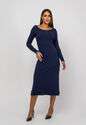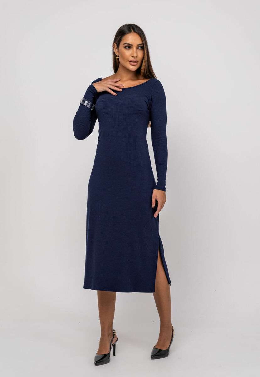 Vestido Midi M/L Decote Canoa Canelado Azul Salvatore