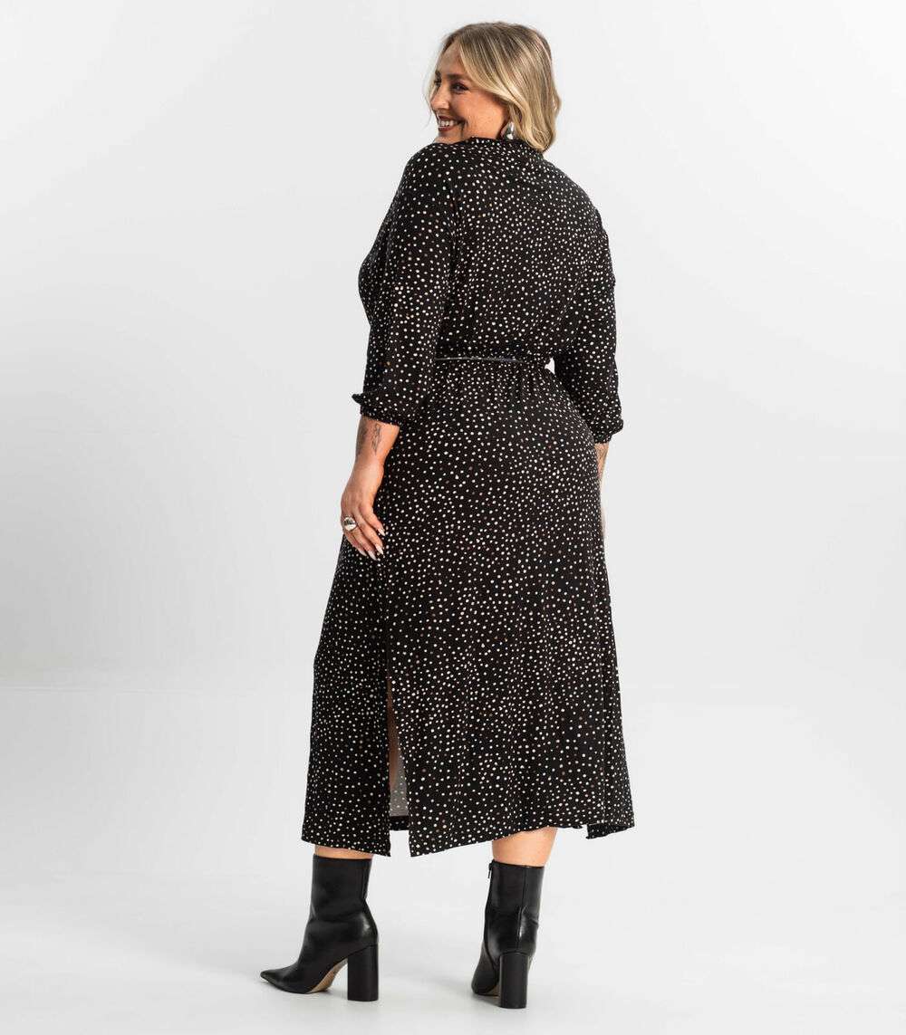Vestido Midi Plus Manga 7/8 Secret Glam Preto