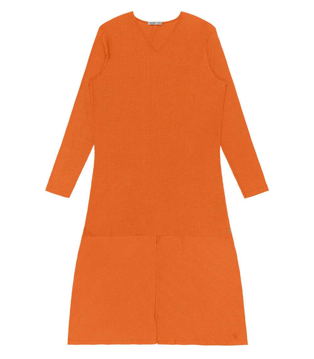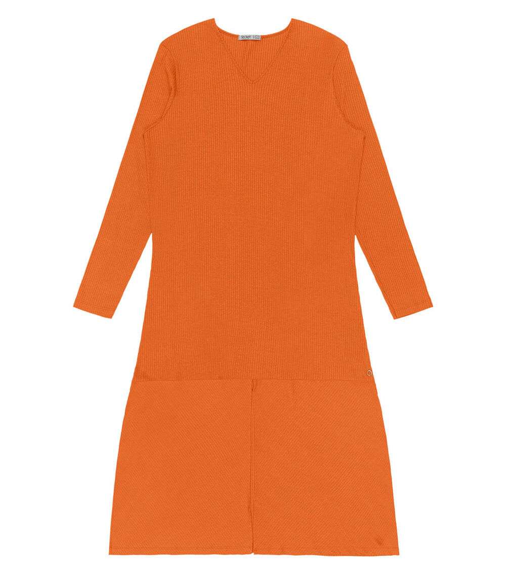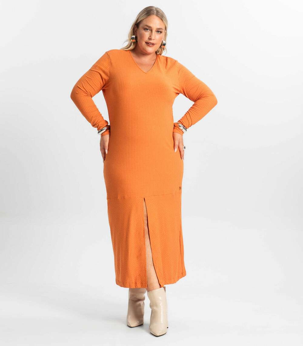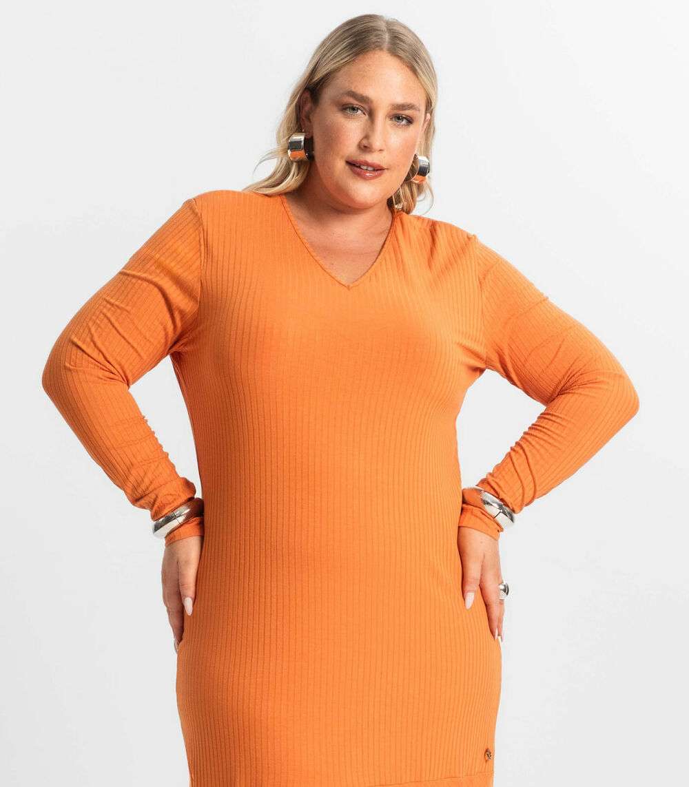 Vestido Midi Plus Size Manga Longa Secret Glam Laranja