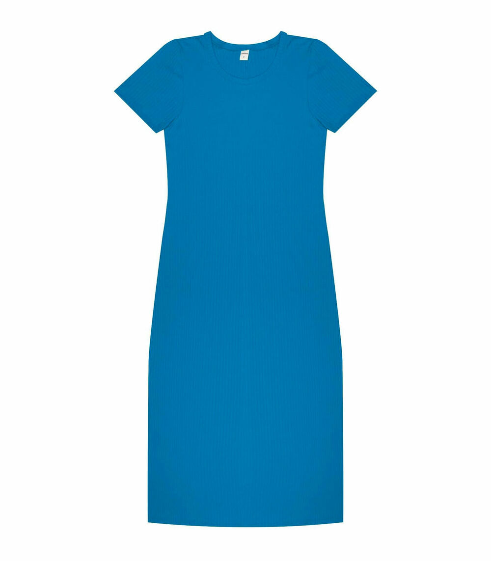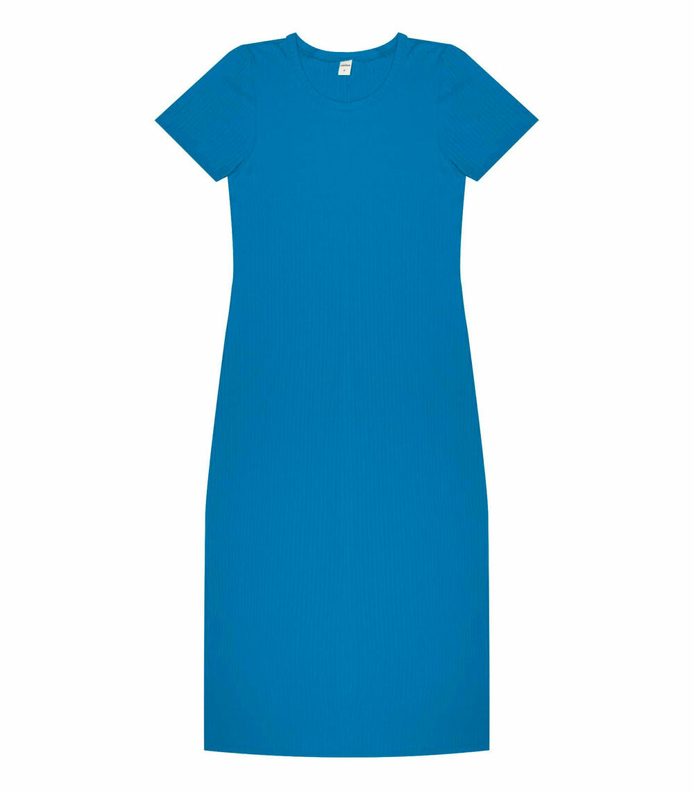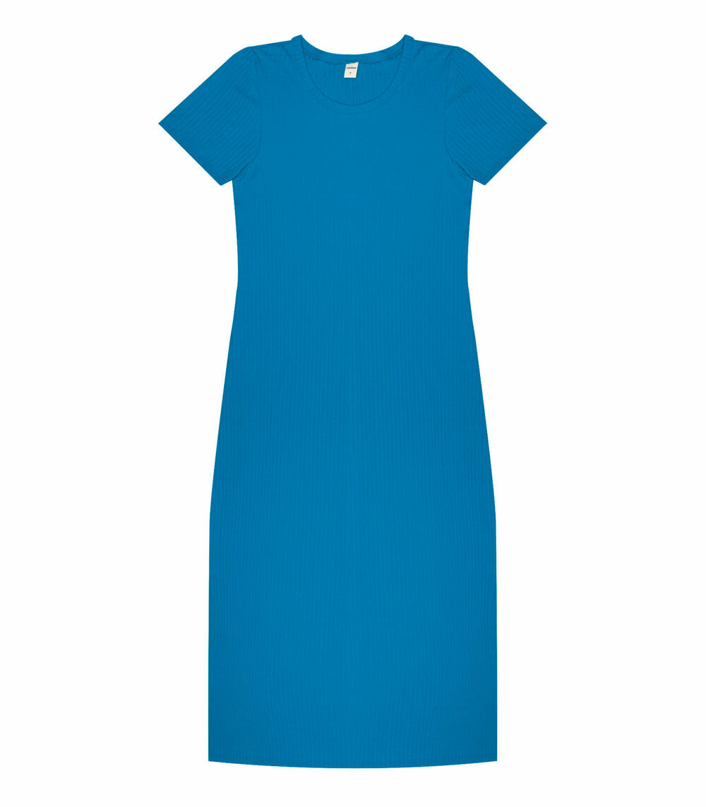 Vestido Midi Ribana Canelada Básico Rovitex Azul