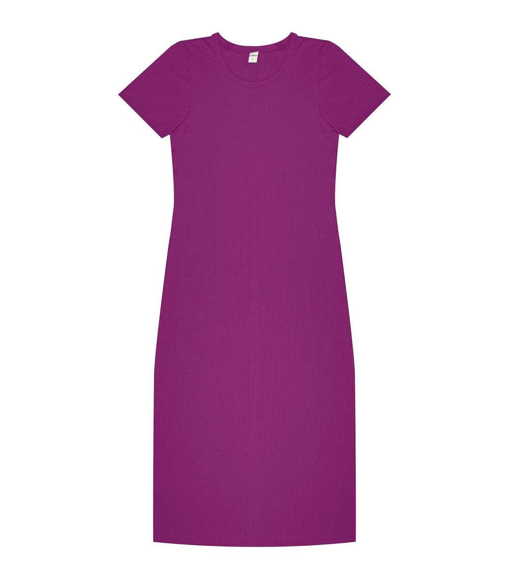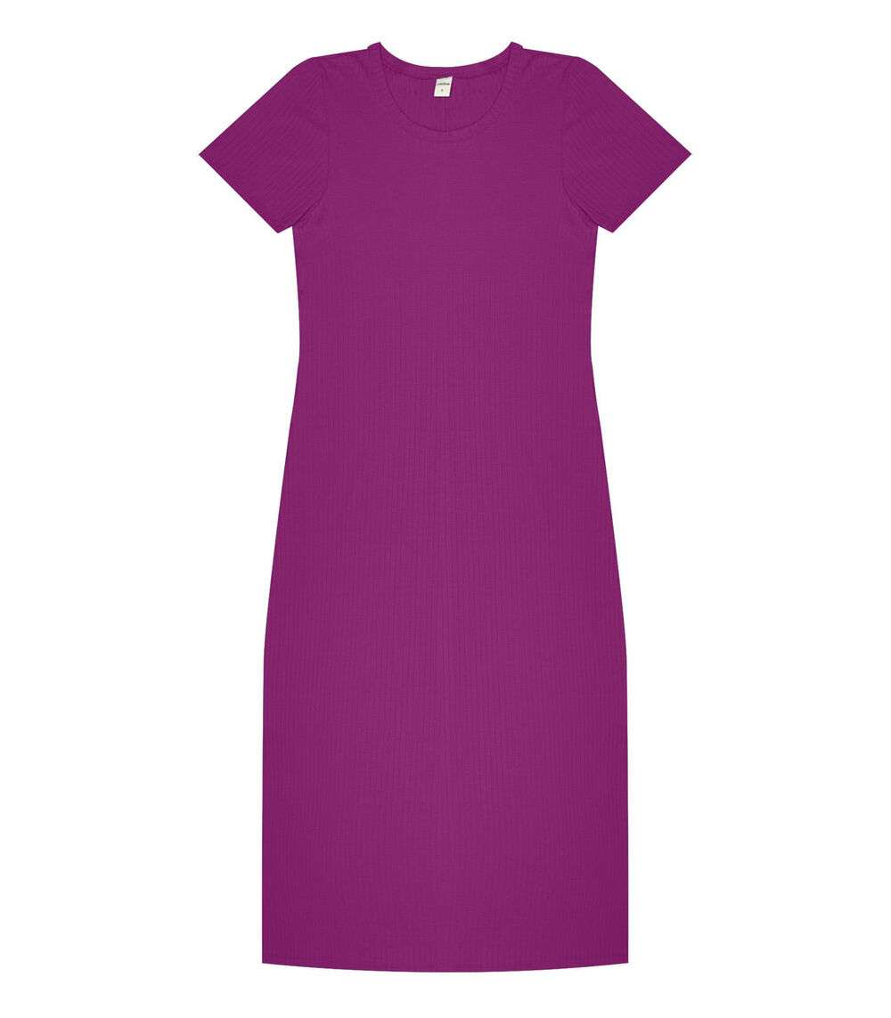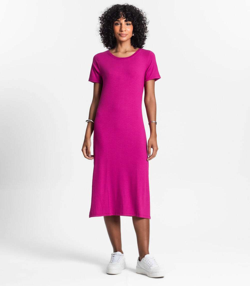 Vestido Midi Ribana Canelada Básico Rovitex Roxo