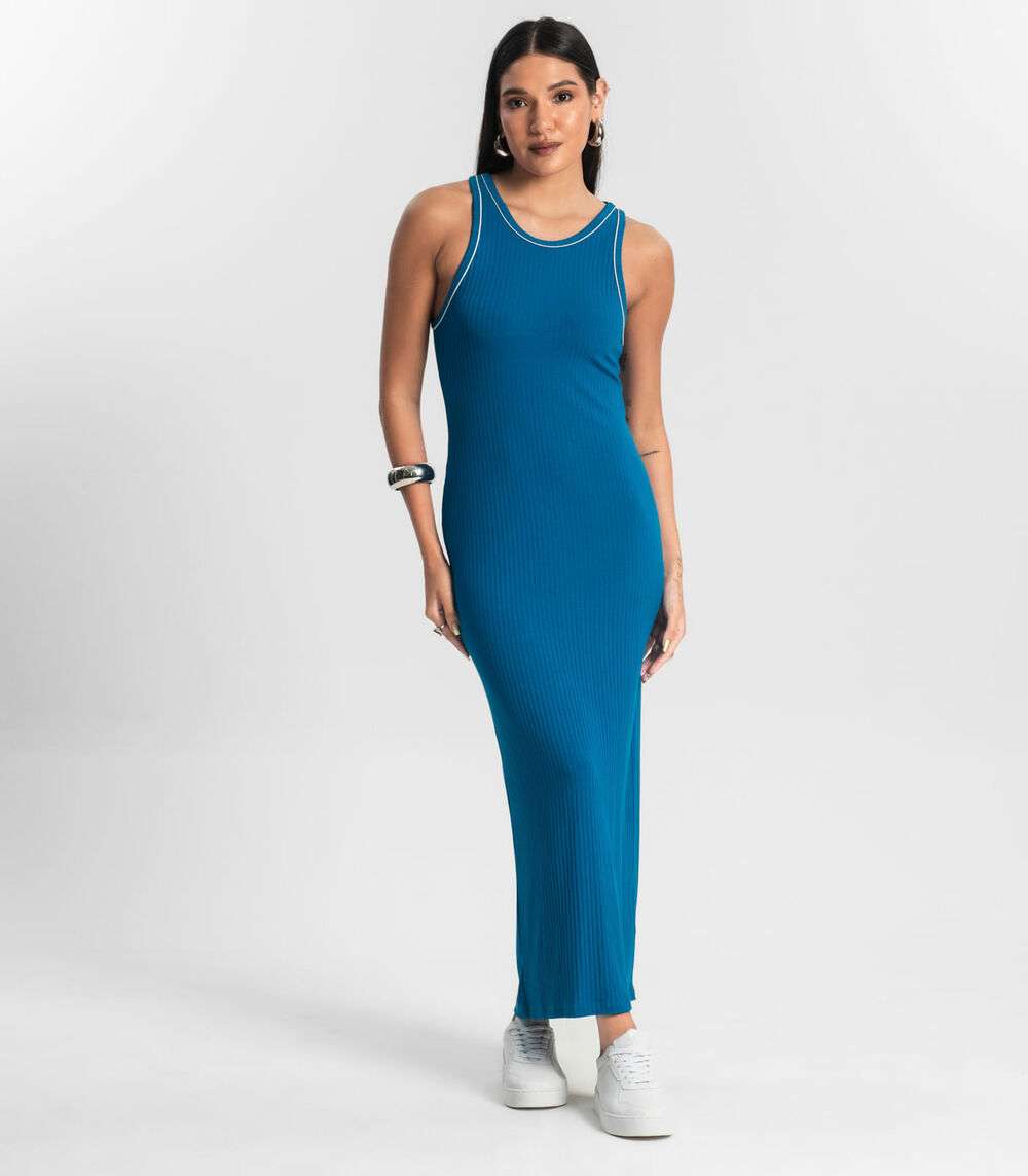 Vestido Midi sem Manga Ribana Canelada Azul