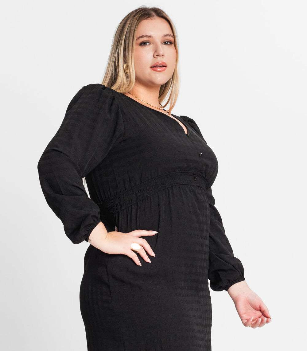 O Vestido Plus Size Em Air Flow Secret Glam é uma peça deslumbrante e confortável. Feito em air flow xadrez, seu design apresenta uma frente dupla e detalhes delicados, como os 3 botões de enfeite. O recorte com elástico proporciona um ajuste perfeito, realçando as curvas com elegância. Sua abertura na parte da frente adiciona um toque de charme e praticidade. Ideal para ocasiões especiais, este vestido é a escolha certa para quem busca estilo e sofisticação.