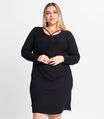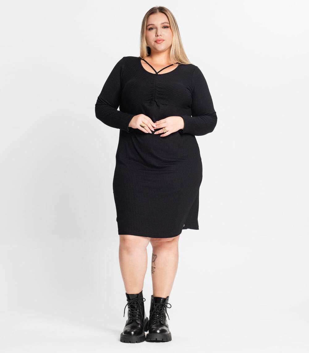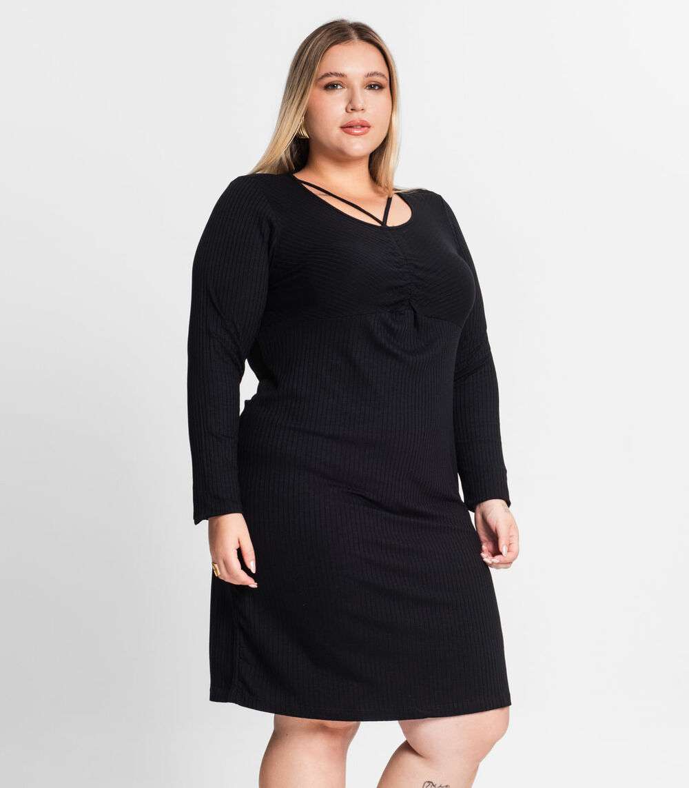 Vestido Plus Size Em Ribana Canelada Secret Glam Preto
