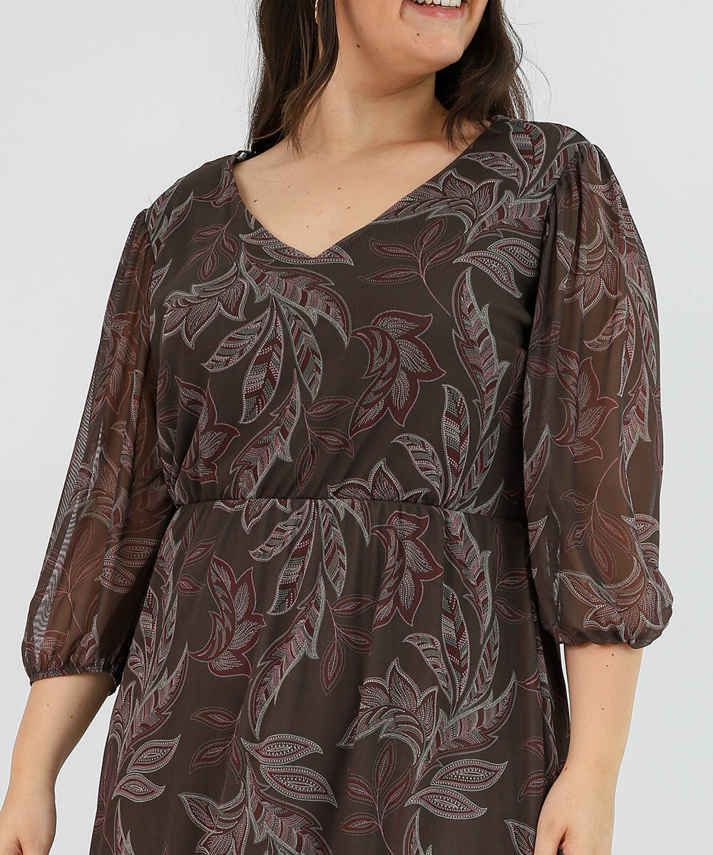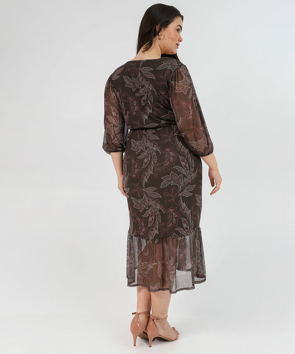Vestido Plus Size Feminino Tule Estampado Marisa Verde