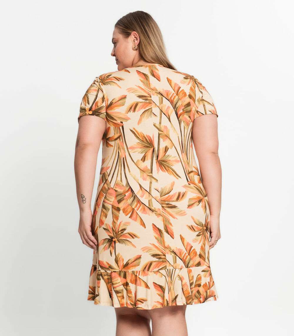 Vestido Plus Size Select, desenvolvido em Viscose Premiere. Possui decote V, manda curta e recorte com babado na barra. Modelagem confortável para o dia a dia! Combine com: sandálias e sapatilhas.