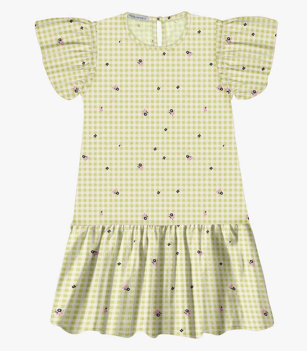 Vestido Popeline Estampado Trick Nick Verde