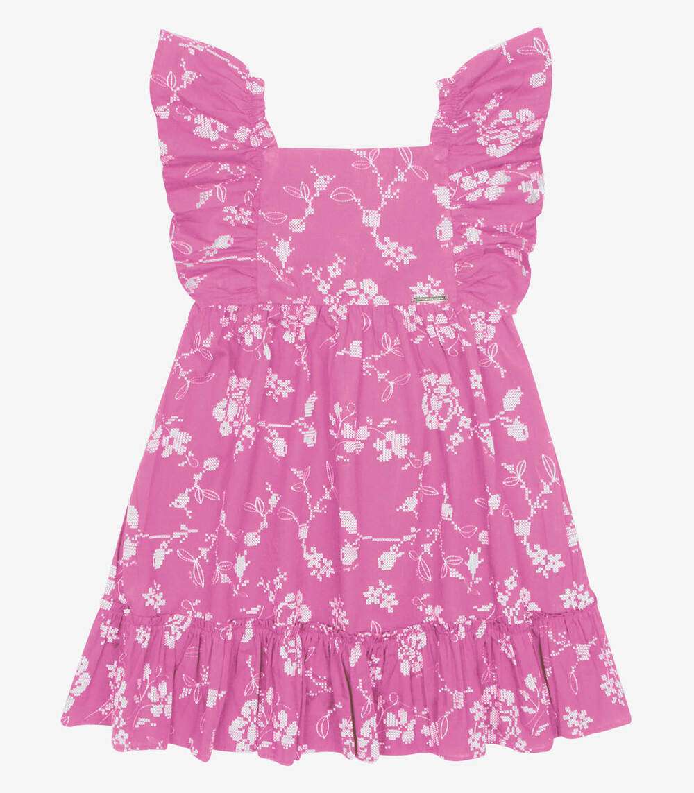 Vestido Popeline Floral Bordado Trick Nick Rosa