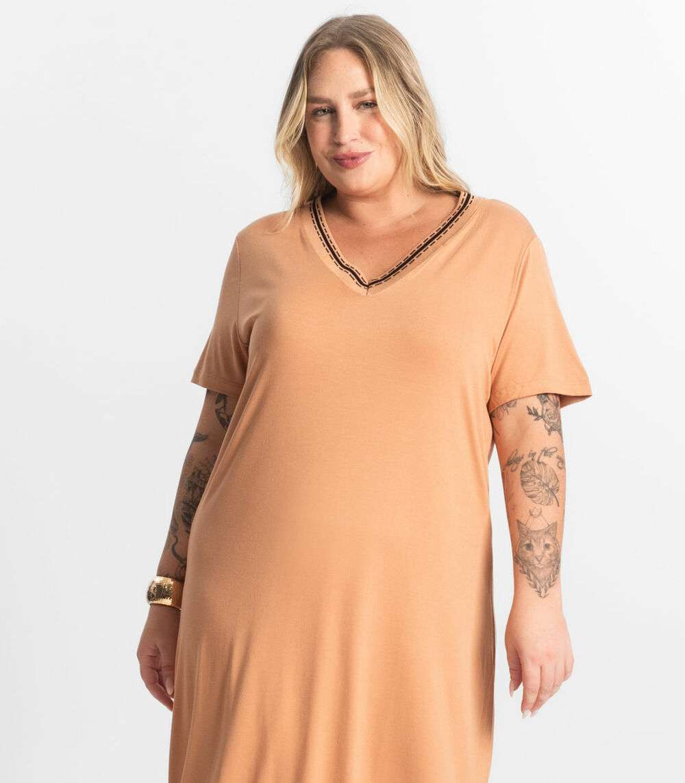 Vestido Super Midi Plus Size Secret Glam Marrom