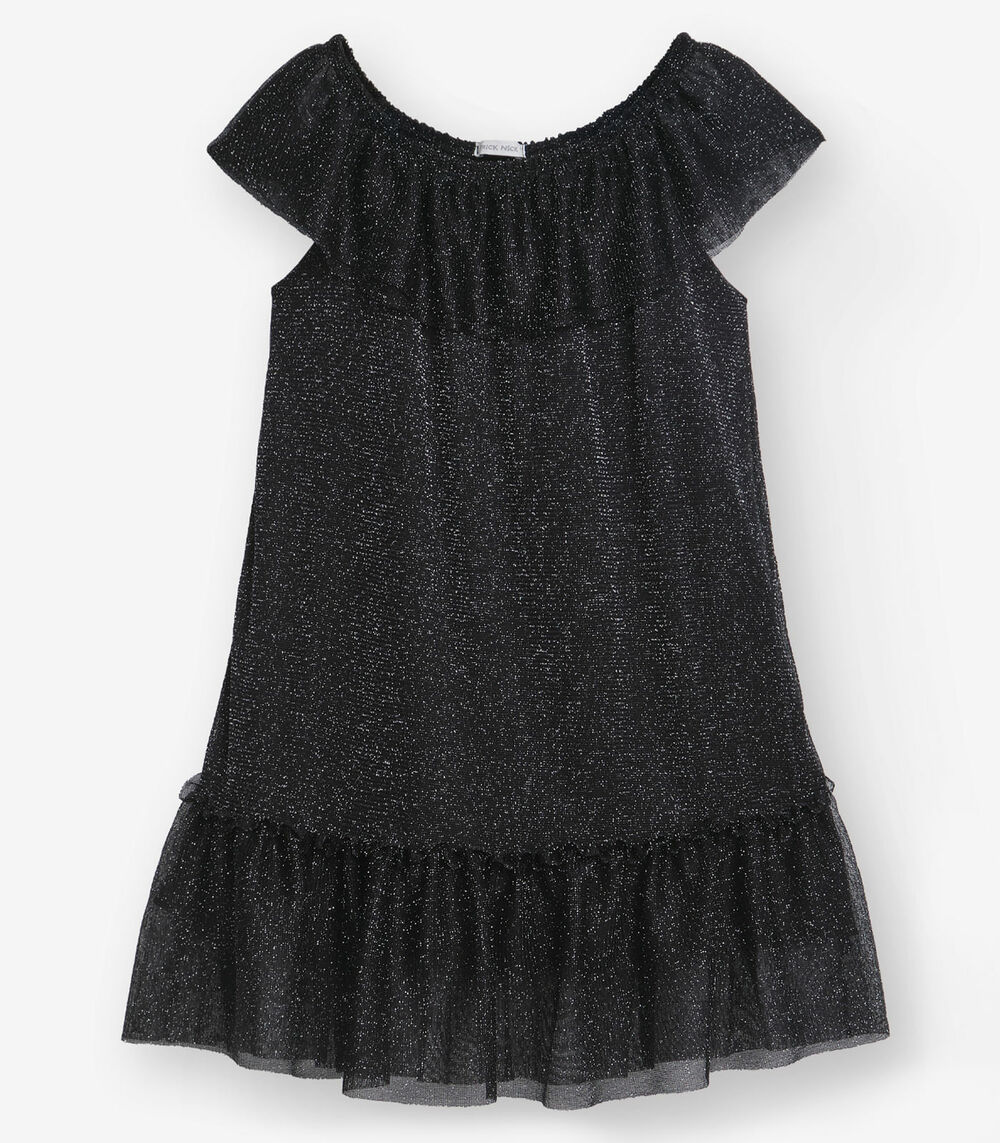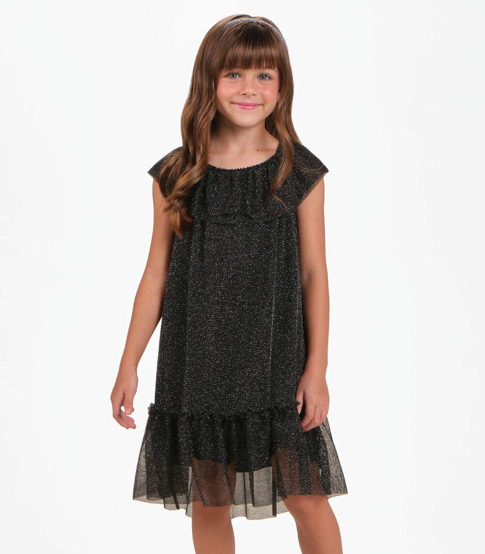 Vestido Tule Shine e Cotton Leve Trick Nick Preto